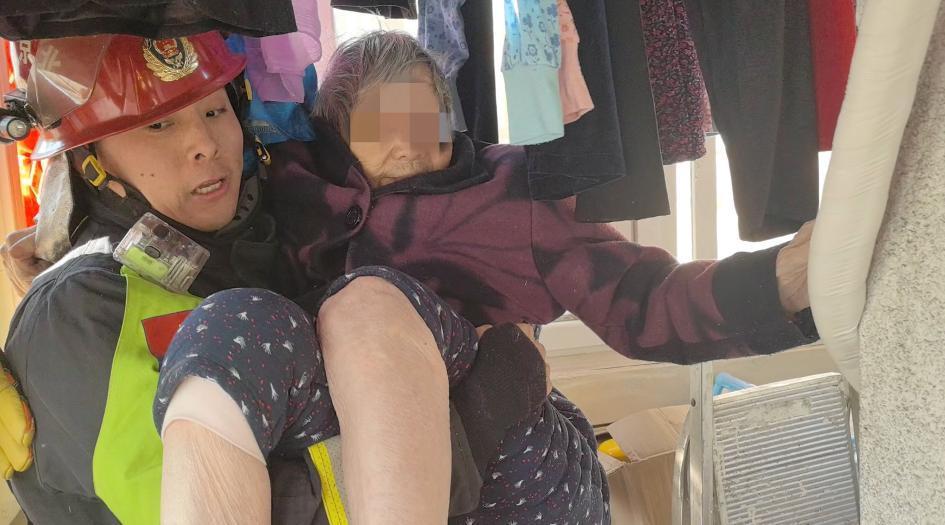 付翔从队员手上接下老人并抱到床上两名消防员一边轻声安抚老人,一边慢慢移动老人身体,仅1分钟,老人就被挪到了窗口,站在阳台上的付翔从队员手中接下老人,将老人抱到了床上。看到老人的裤脚缩到了小腿位置,他赶紧帮老人拉下来。“老人似乎认出我是消防员,使劲握住我的手,不让我们走。”